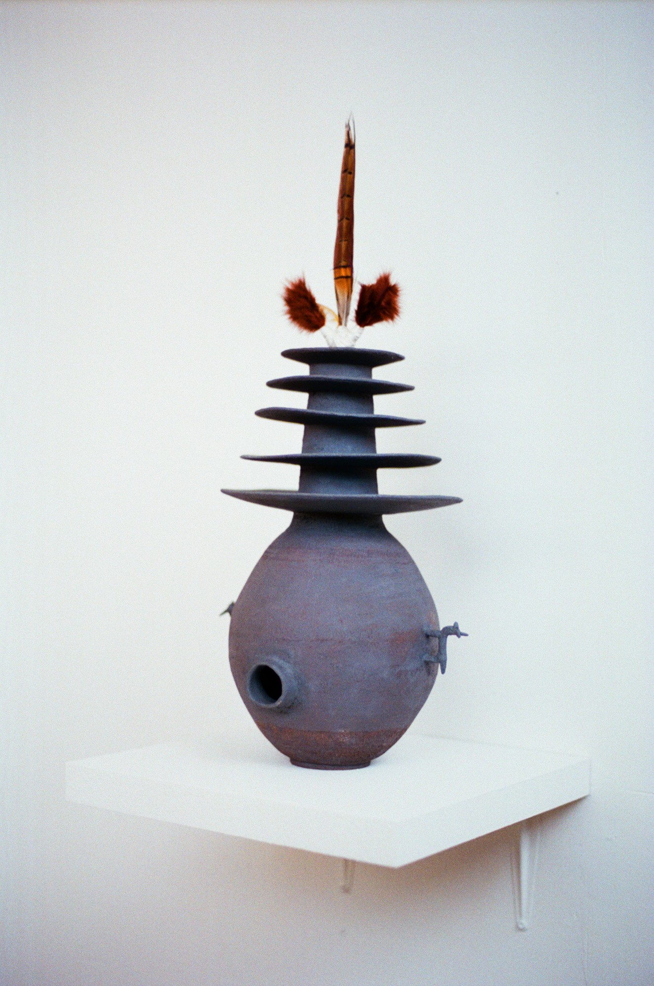 Le travail de céramiste de Benjamin Dosgheas se situe entre art et artisanat, entre archéologie fiction et exploration de techniques traditionnelles. Ses pièces uniques, utilitaires ou sculpturales, remémorent des récits d’origines inconnues. L’alliance de matériaux, l’évocation de rituels et de significations oniriques composent ces objets-mémoire. Franco-portugais originaire d’Auvergne, Benjamin Dosgheas est diplômé des écoles Olivier de Serre et Duperré. Il travaille entre Paris et la Bourgogne.